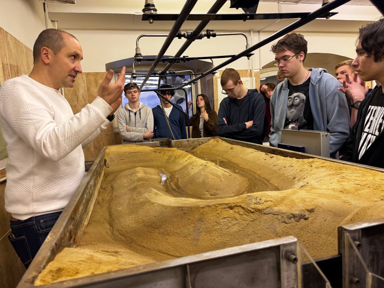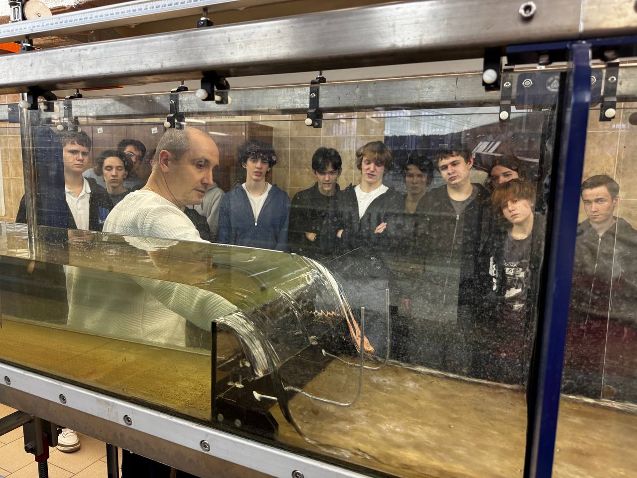 На современном лабораторном оборудовании ребята увидели возможности физического моделирования механики жидкости, узнали особенности движения жидкости напорных и безнапорных потоков и раскрыли для себя главные задачи, которые ежедневно решают инженеры-строители и гидрологи.